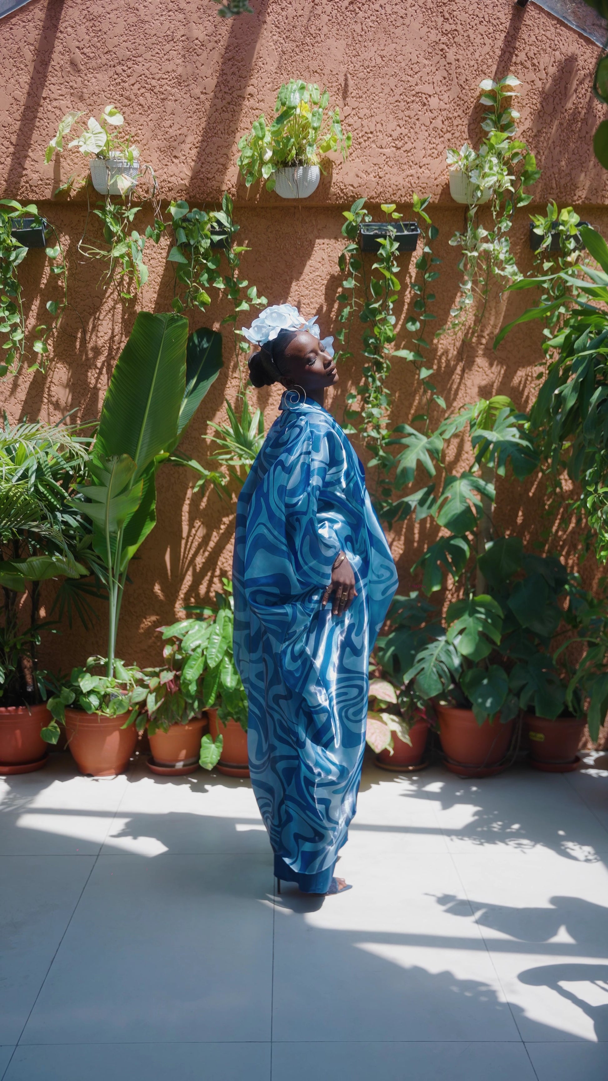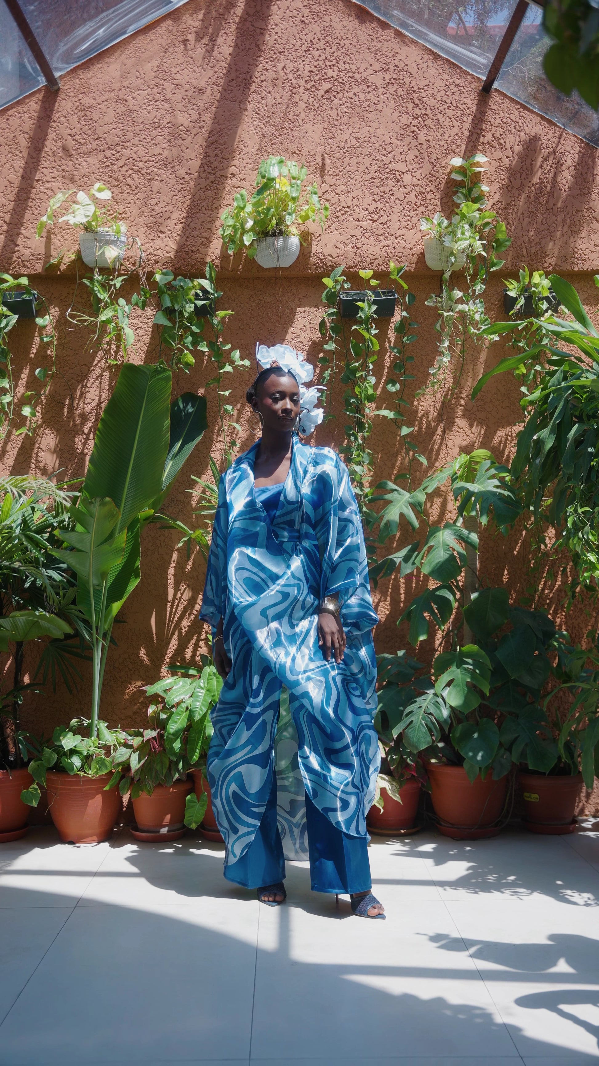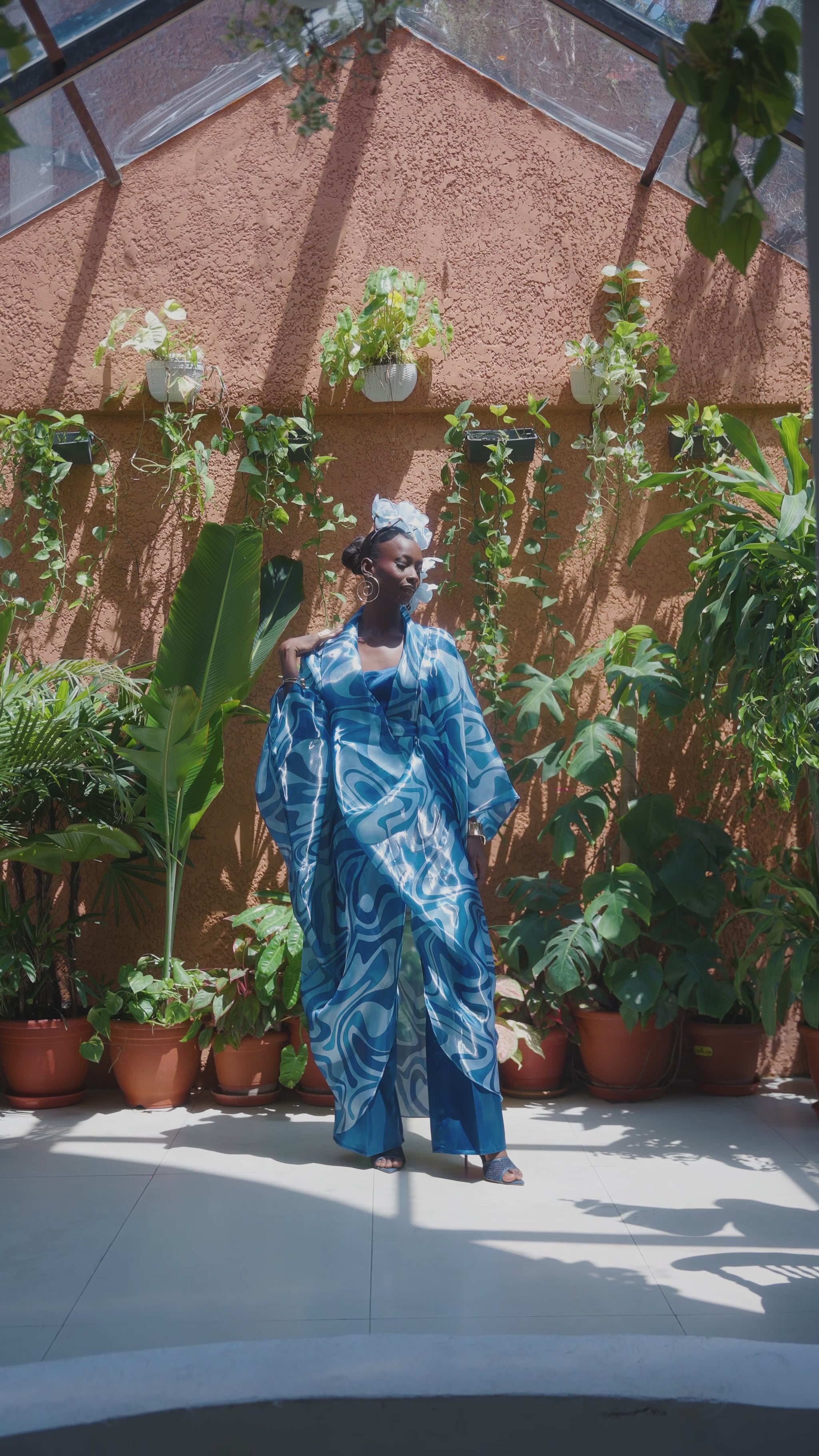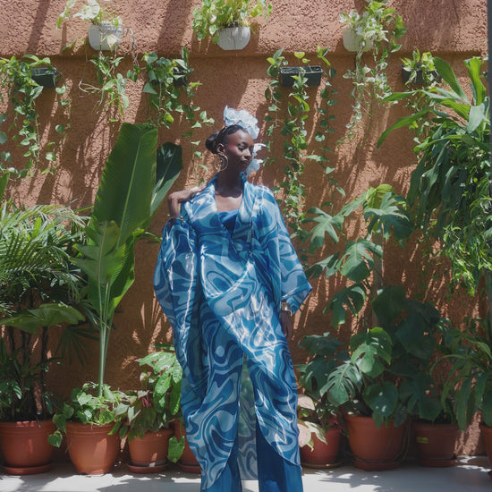 Crafted with a patterned organza robe that features a beautiful glossy finish, it layers perfectly over a simple inner and structured Mikado trousers. The Yasmine set ensures you'll shine at any daytime celebration or evening event.